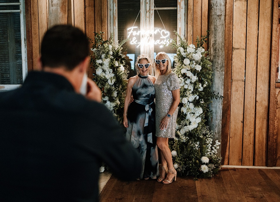 - Relocated ceremony floral pillar arrangements to the reception photo wall.