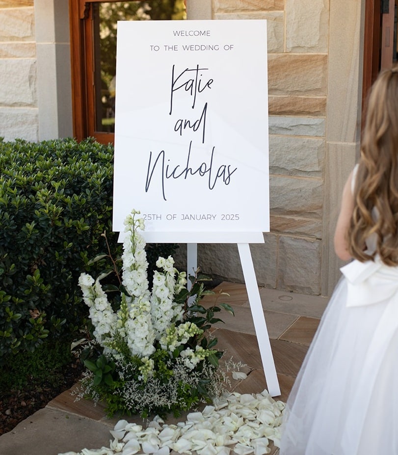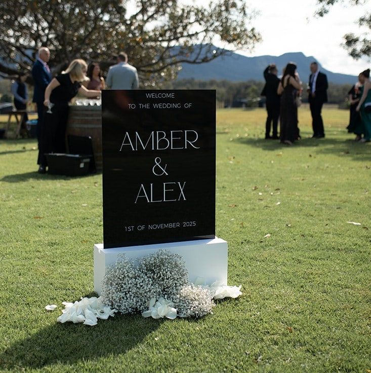 Signage can be made to coordinate with our styling decor hire, easels, hanging and freestanding stands, gift signs and table numbers.